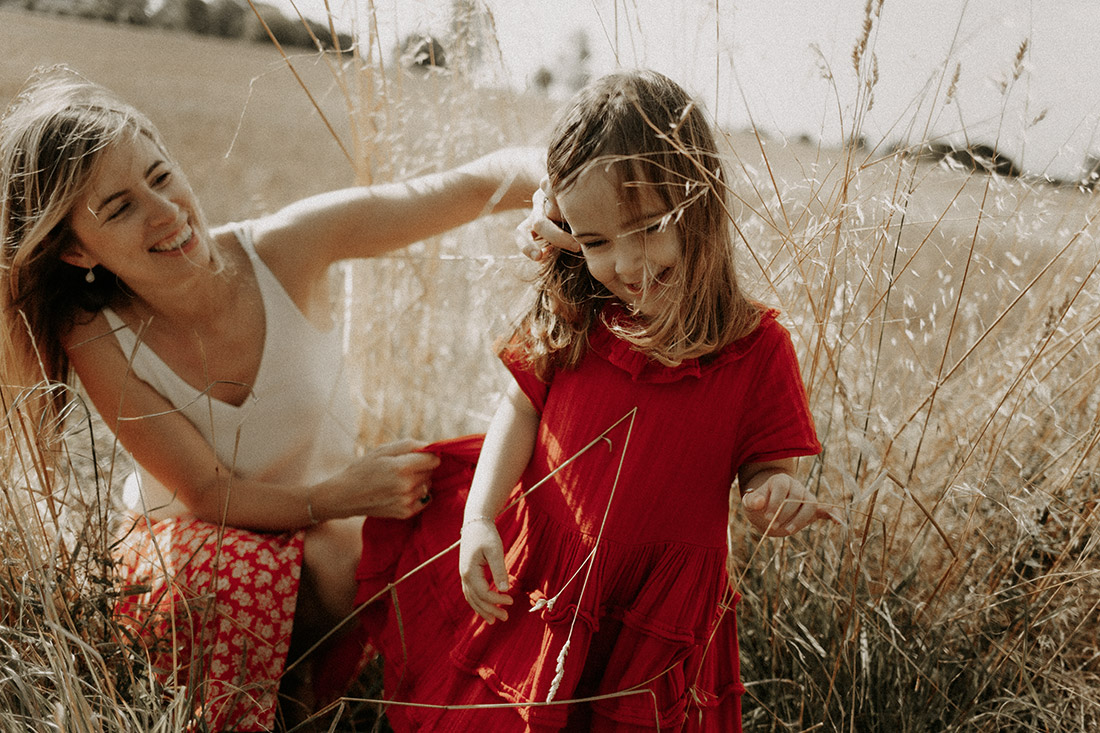 Donne moi une famille de coeurs (que je connais très bien, puisque je les raconte depuis quelques années déjà), donne moi un champ, un peu de soleil, des hautes herbes et des robes qui tournent et tu me perds complètement. Avec Agathe, Rémi, Jade et petite Adèle c’est tout ça et me replonger dans nos photos pour vous en poser quelques unes ici, me ramène à la douceur de cette matinée avec eux. Pas grand chose à faire pour capturer du joli. Tu marches, tu improvises, tu discutes beaucoup beaucoup et puis te regardes. Tu regardes les filles prendre toute leur place, leur parents se faire embarquer dans leur petite folie et tout vient te tomber dans l’oeil. Juste déclencher sur LE moment. Et CE moment il y en a eu plein. Cette séance je l’aime follement et elle illustre exactement ce que j’aime et ce que j’entends de la séance en famille. Les souvenirs doux sont là et j’en profite pour leur faire des bisous en attendant de monter en haut de la dune du Pilat dans quelques semaines avec eux et les raconter à nouveau avec des coeurs dedans*