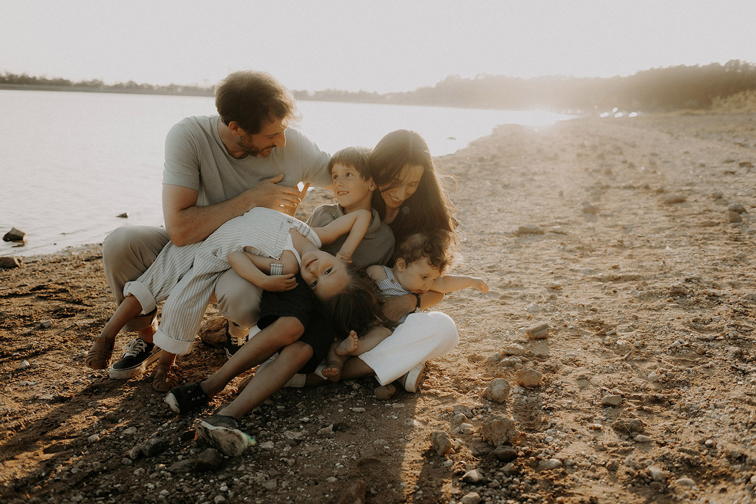 A force de faire de moi votre photographe de famille, je me spécialise petit à petit dans les grandes familles et j’adore ça. J’adore vous voir vous agrandir et rencontrer vos petits parfaits. Avec Pauline & Antoine c’est complètement ça… Nous nous sommes rencontrés autour de Gaspard il y a quelques années. Ils étaient trois, il venaient prendre le soleil de Toulouse dans leur famille et nous nous sommes rencontrés à ce moment là. Puis retrouvés ensuite chez Eux, au coeur de Paris à la naissance de Jeanne, puis encore une fois au grand air de l’hiver quelques années après quand les deux petits n’étaient pas encore très grands et puis Joseph… Une nouvelle excuse parfaite de nous retrouver à nouveau et imaginer ensemble une nouvelle virée. Ils m’ont laissée le choix du lieu et sans hésiter au coeur de cet été, c’est au bord du lac de St Ferreol en toute fin de journée que je leur ai donné rendez-vous.