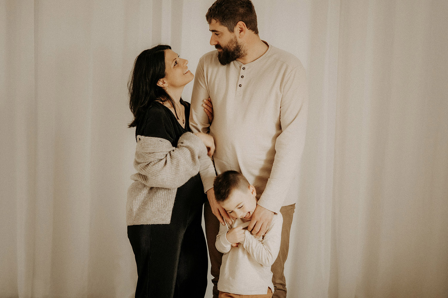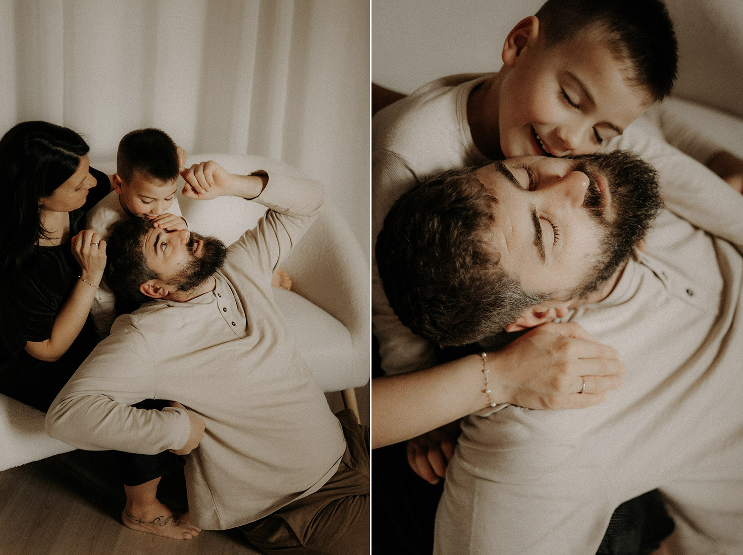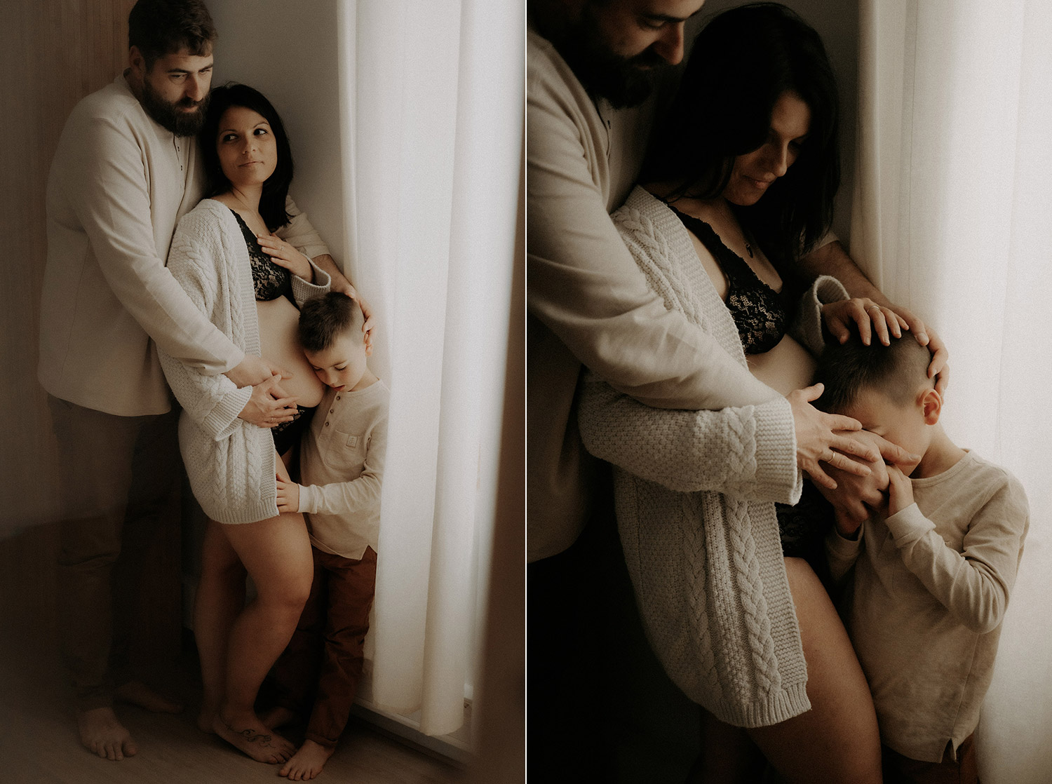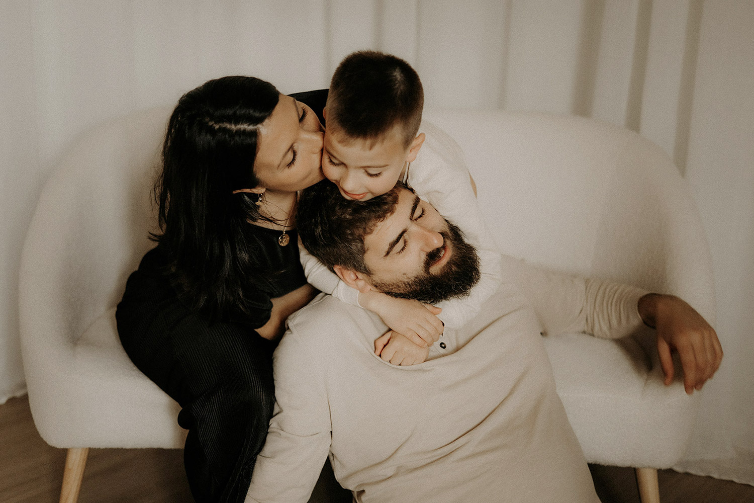 Quelques semaines après être venus se poser dans ma lumière du studio, Elise est arrivée faisant de Bénédicte & Guillaume des parents comblés au climax et de Gabin un grand frère charmant. Avant leur rencontre, ils sont venus me confier du précieux. Me confier un peu de leur vie, de leur complicité, de leur tendresse aussi autour de ce joli monde. Ce fut très naturel de les recevoir entre chocolat chaud et bons moments et de les raconter. Un moment pour eux, pour Elle aussi entre lumière douce et clair-obscur, ils se sont laissés à être ce qu’ils sont tout simplement. Et sans ce lâcher prise, impossible pour moi de créer du beau, du vrai, des photos qui parlent. Et je crois qu’avec eux, chaque image raconte finalement un peu plus que ce qu’elle peut montrer et c’est clairement ça, la base de mes séances. Capturer du vrai pour n’en garder que des émotions*