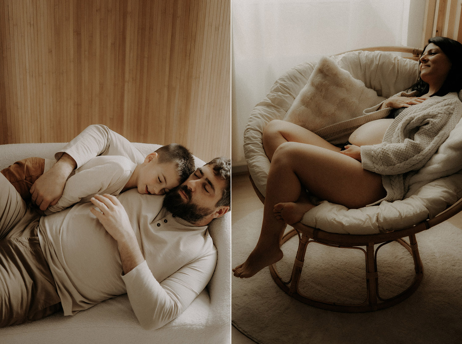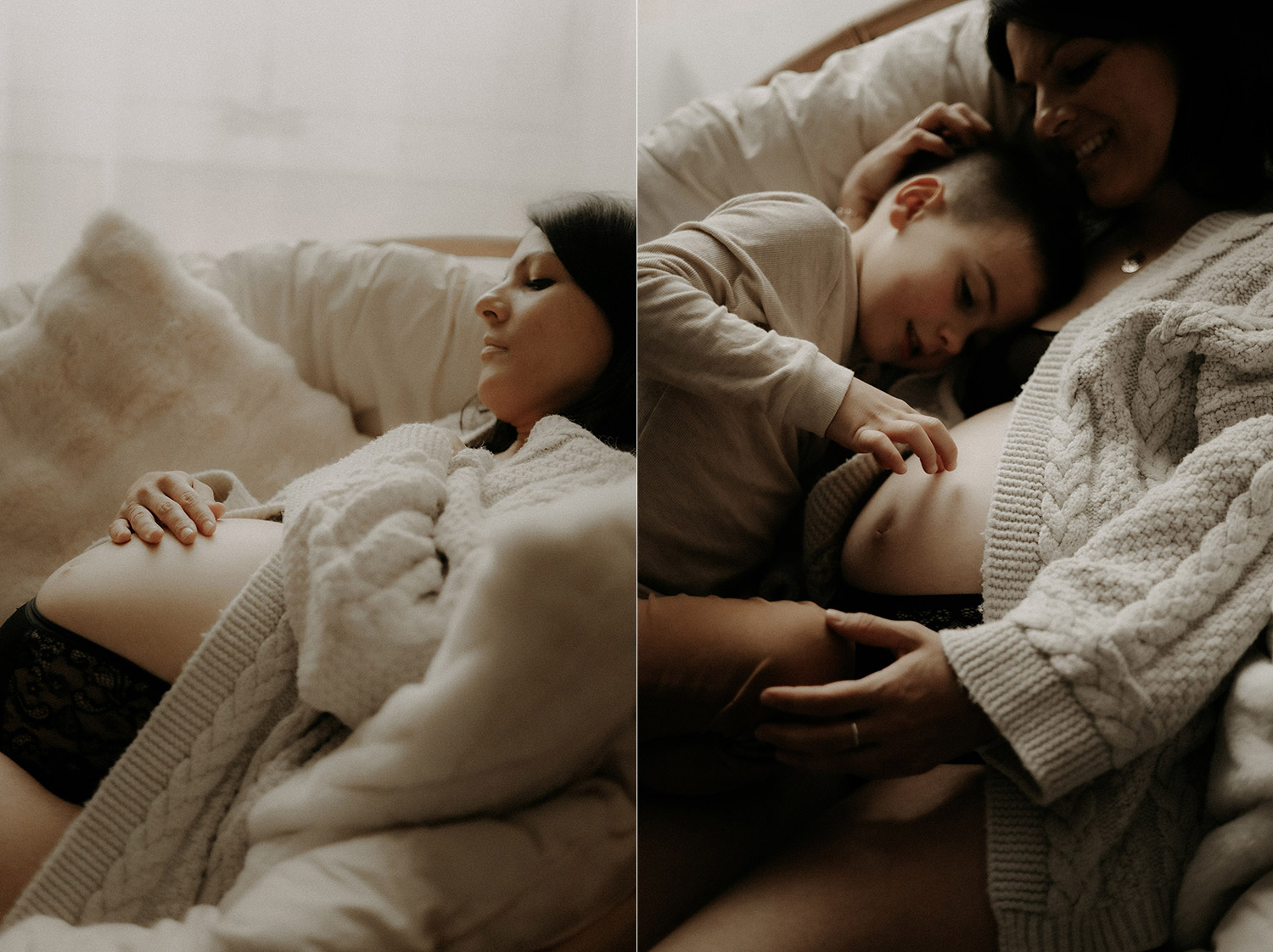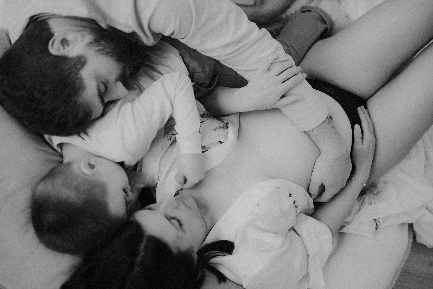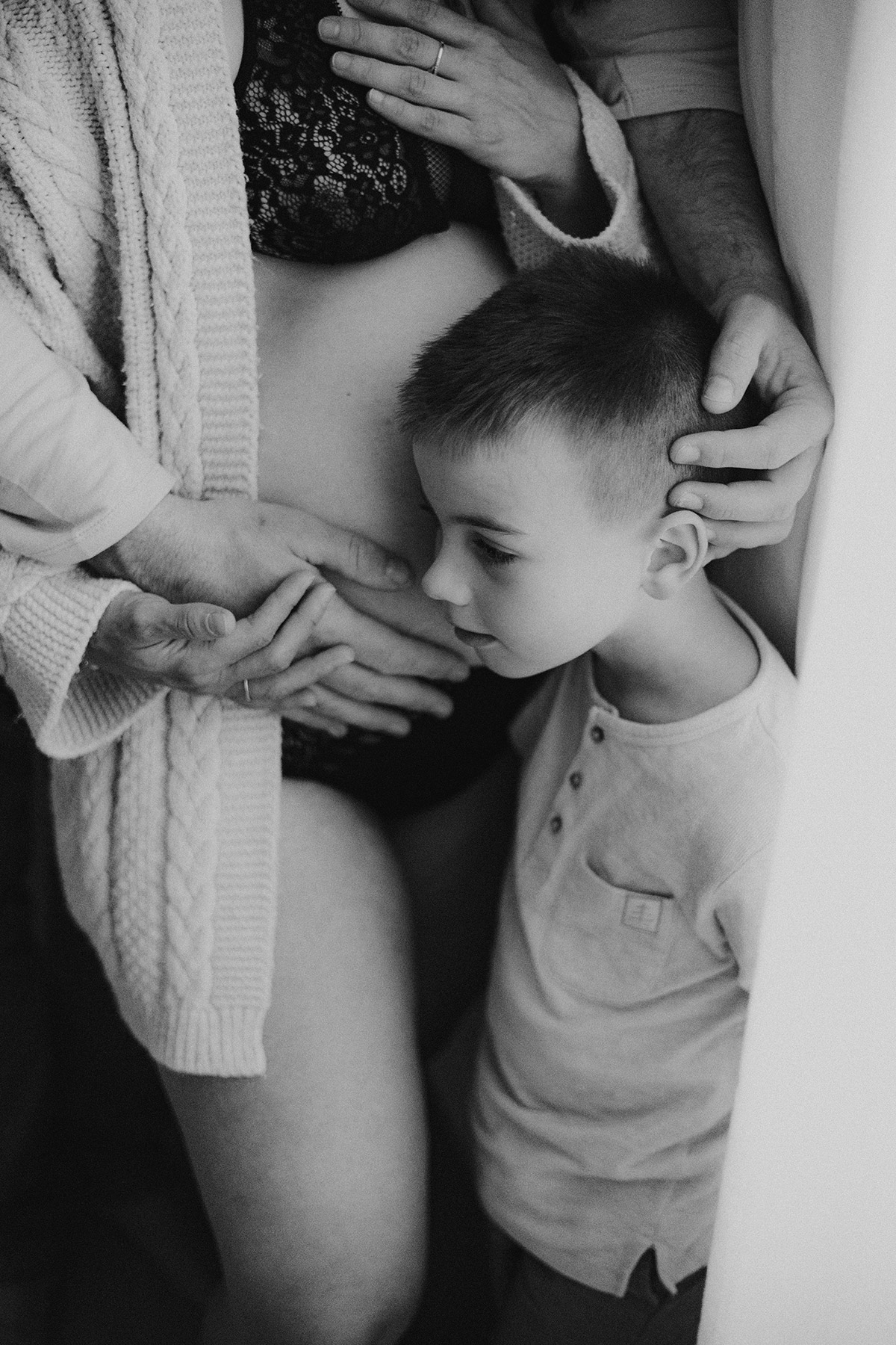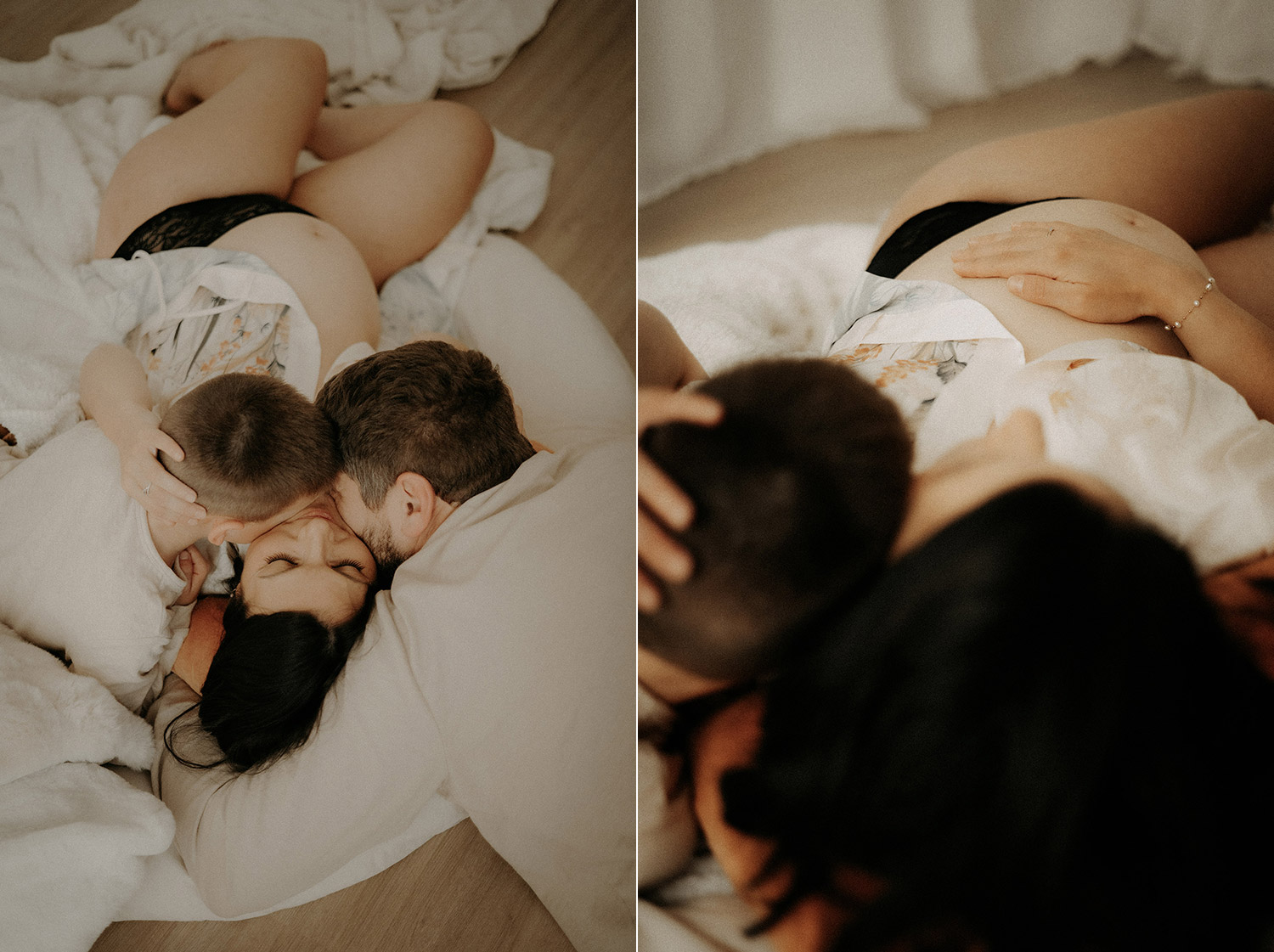 Quelques semaines après être venus se poser dans ma lumière du studio, Elise est arrivée faisant de Bénédicte & Guillaume des parents comblés au climax et de Gabin un grand frère charmant. Avant leur rencontre, ils sont venus me confier du précieux. Me confier un peu de leur vie, de leur complicité, de leur tendresse aussi autour de ce joli monde. Ce fut très naturel de les recevoir entre chocolat chaud et bons moments et de les raconter. Un moment pour eux, pour Elle aussi entre lumière douce et clair-obscur, ils se sont laissés à être ce qu’ils sont tout simplement. Et sans ce lâcher prise, impossible pour moi de créer du beau, du vrai, des photos qui parlent. Et je crois qu’avec eux, chaque image raconte finalement un peu plus que ce qu’elle peut montrer et c’est clairement ça, la base de mes séances. Capturer du vrai pour n’en garder que des émotions*
